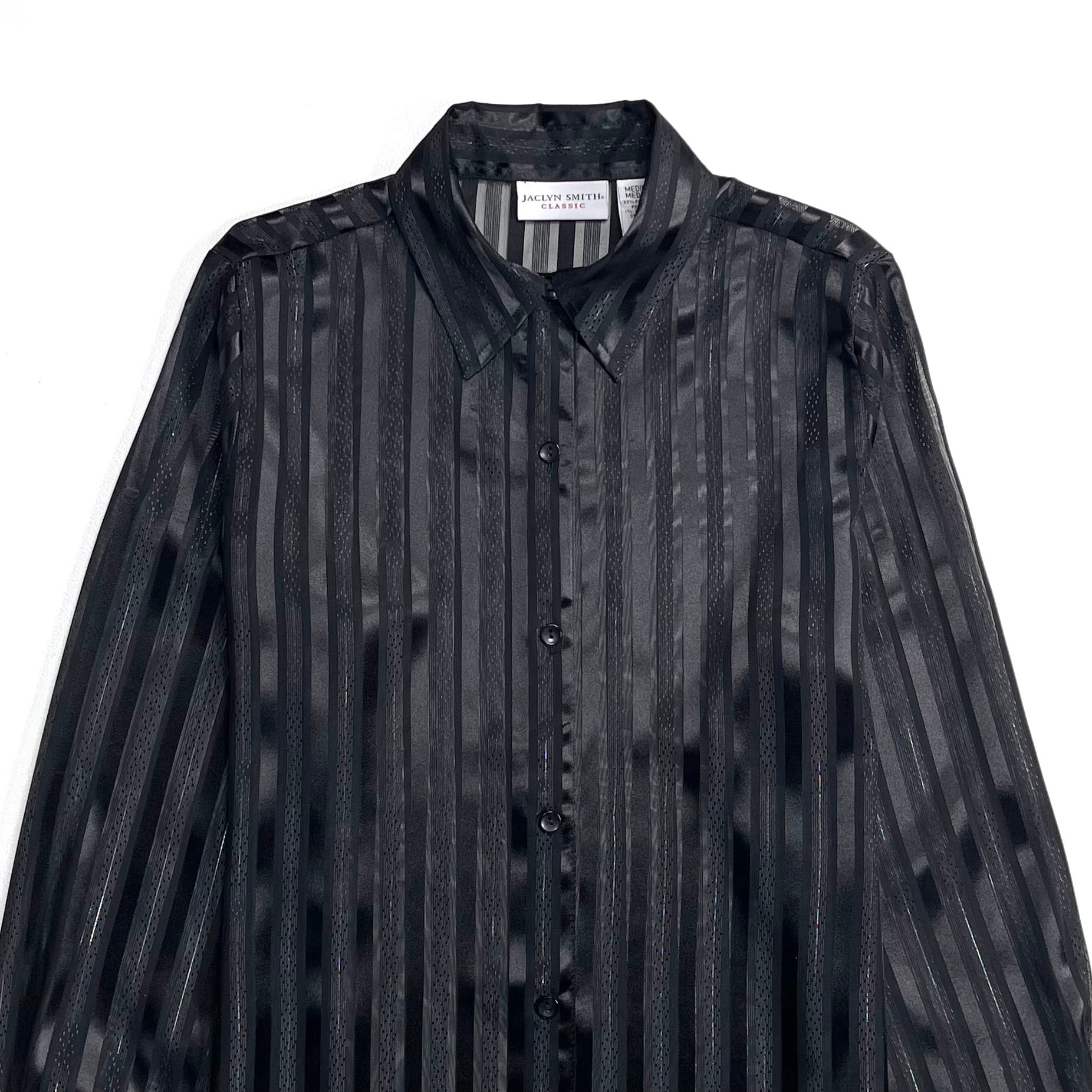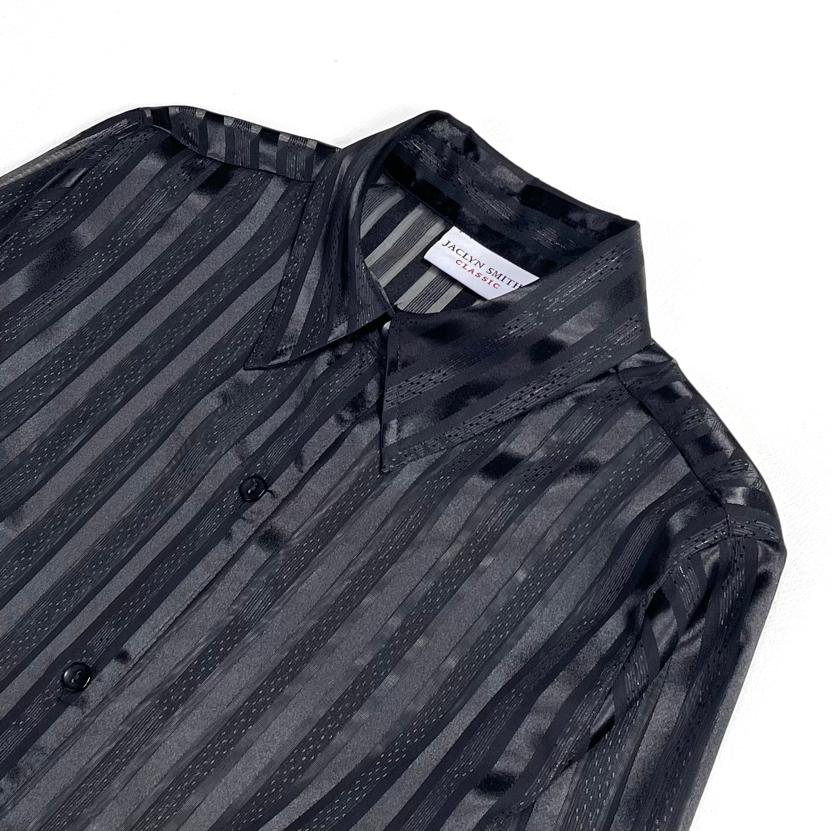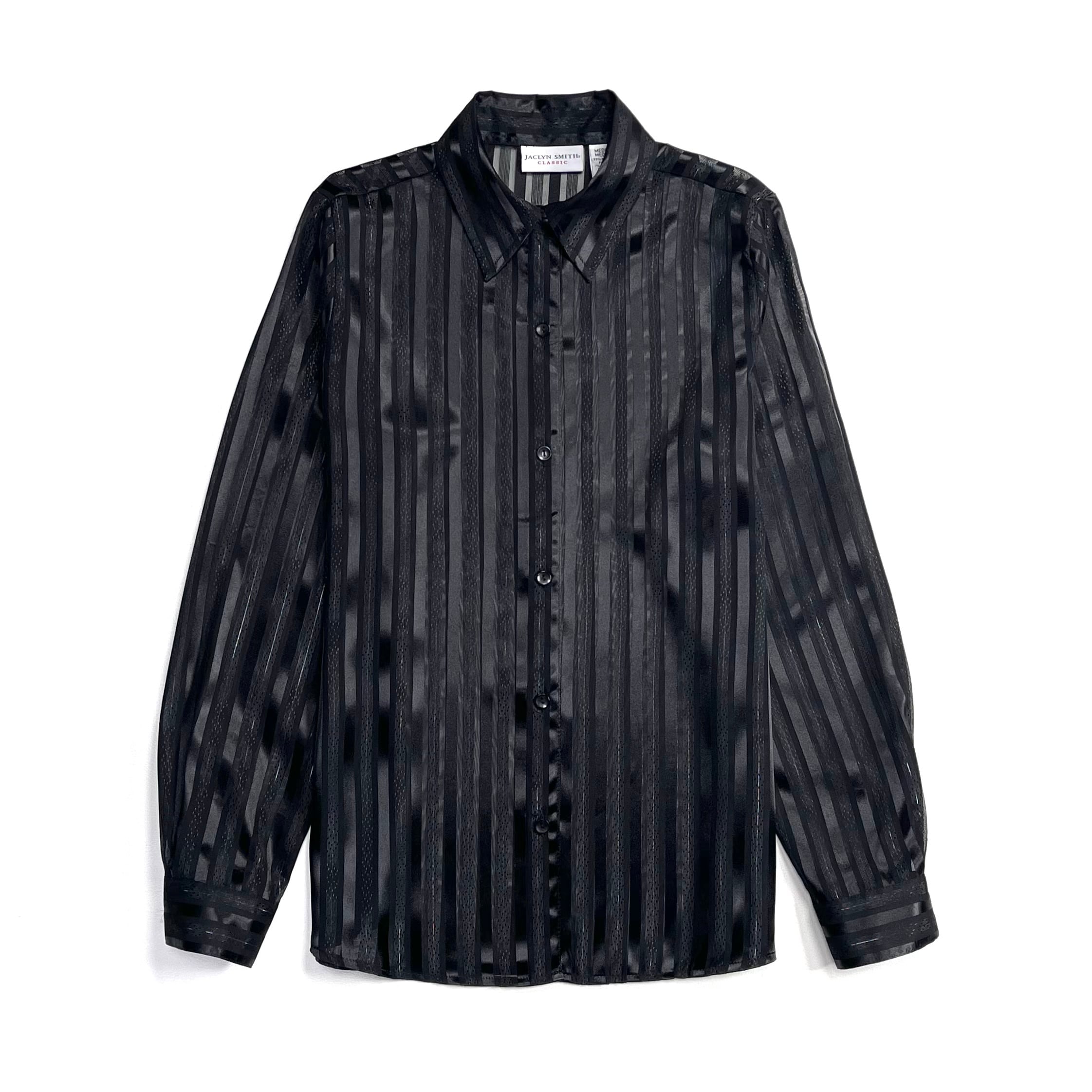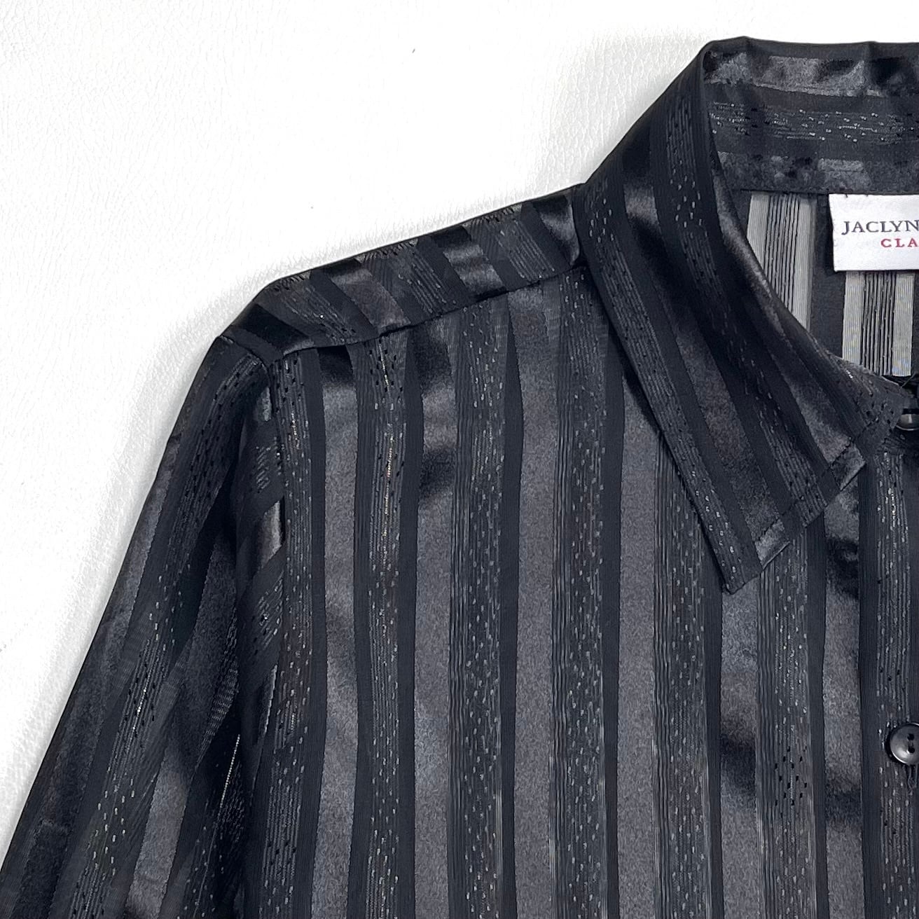 光沢と透け感があるストライプ柄のクラシックでセクシーなブラックシャツ