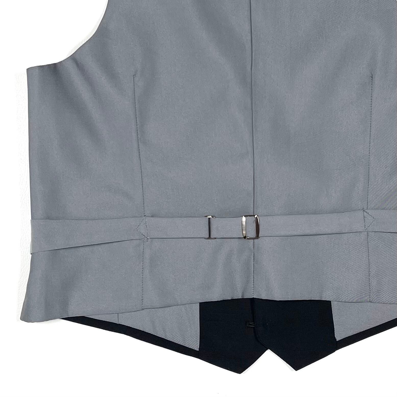 This is a classic black vest featuring a 4-button front and two pockets. Made from wool, the vest has a deep U-shaped curved front and a slim silhouette.