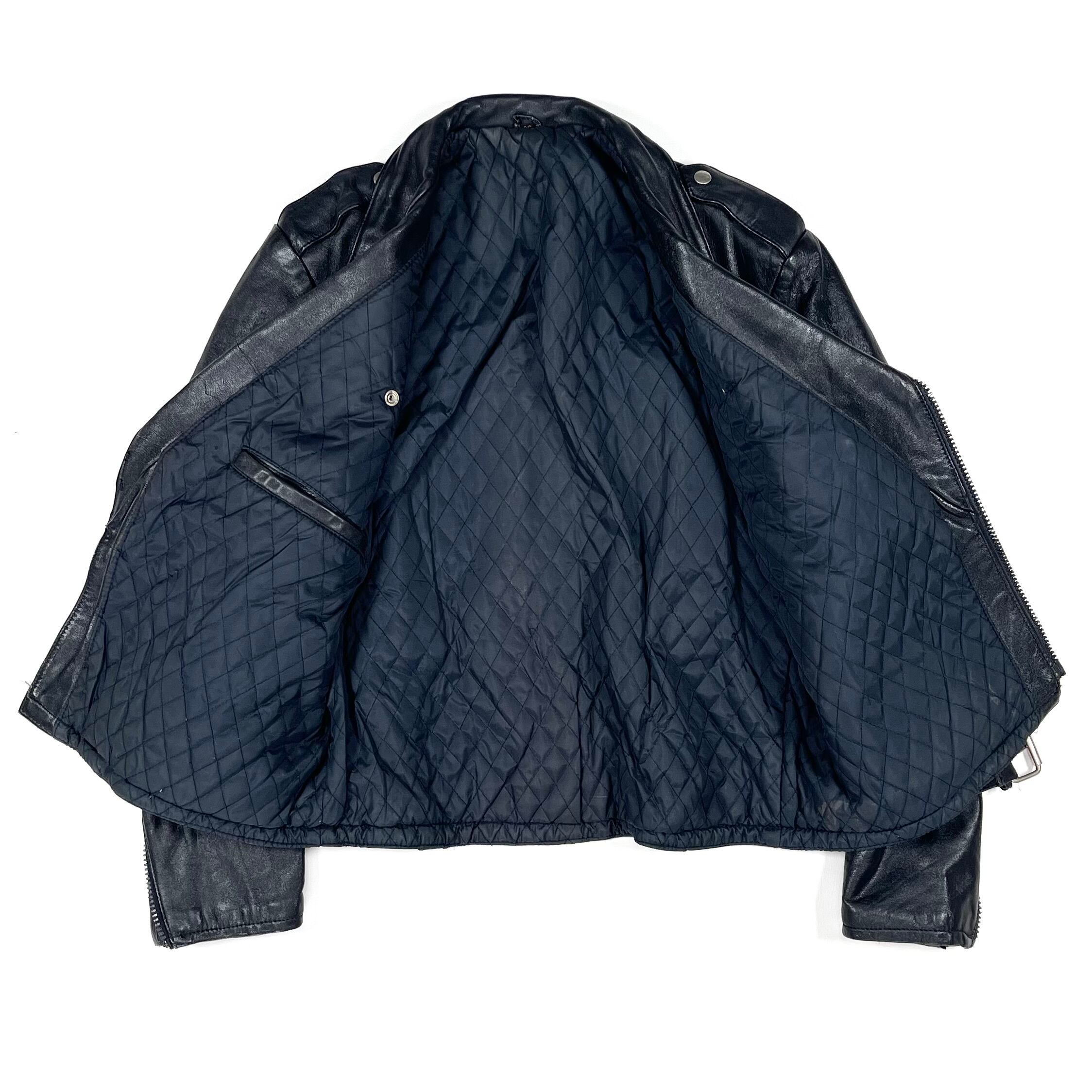 全てブラックジップで、シルバージップとは、また違った印象のバイカージャケットです。