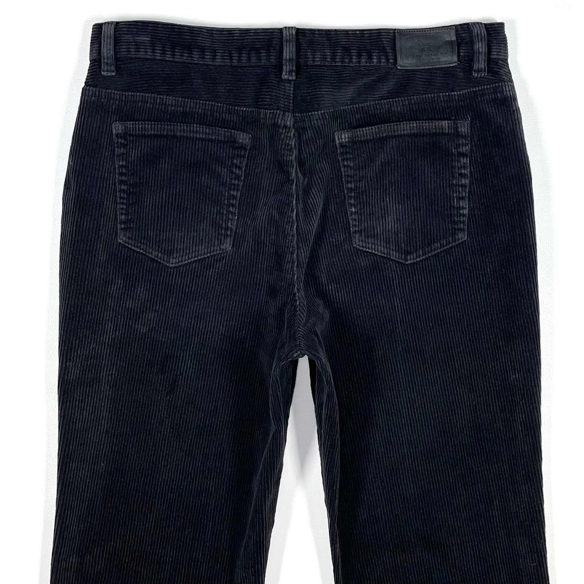 These are LAUREN JEANS corduroy flare jeans made from stretchy fine-wale corduroy. The jeans have a flared silhouette that narrows at the knee and gradually widens toward the hem, offering a gentle and moderate flare. The black corduroy fabric makes these pants versatile and easy to wear.