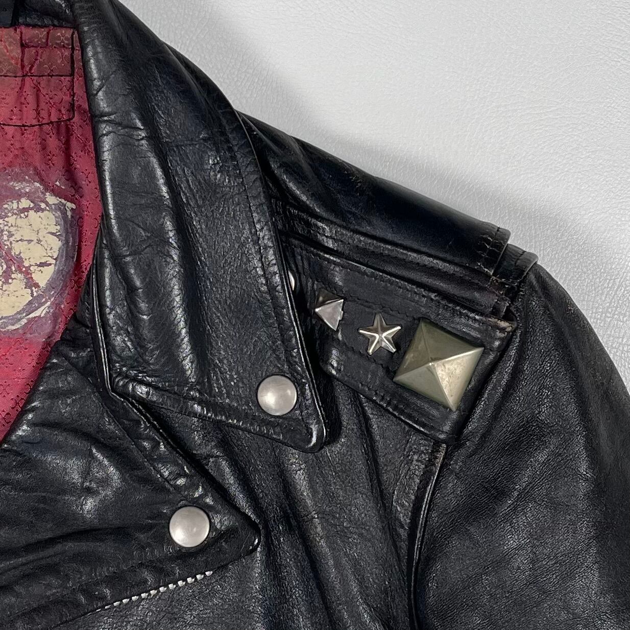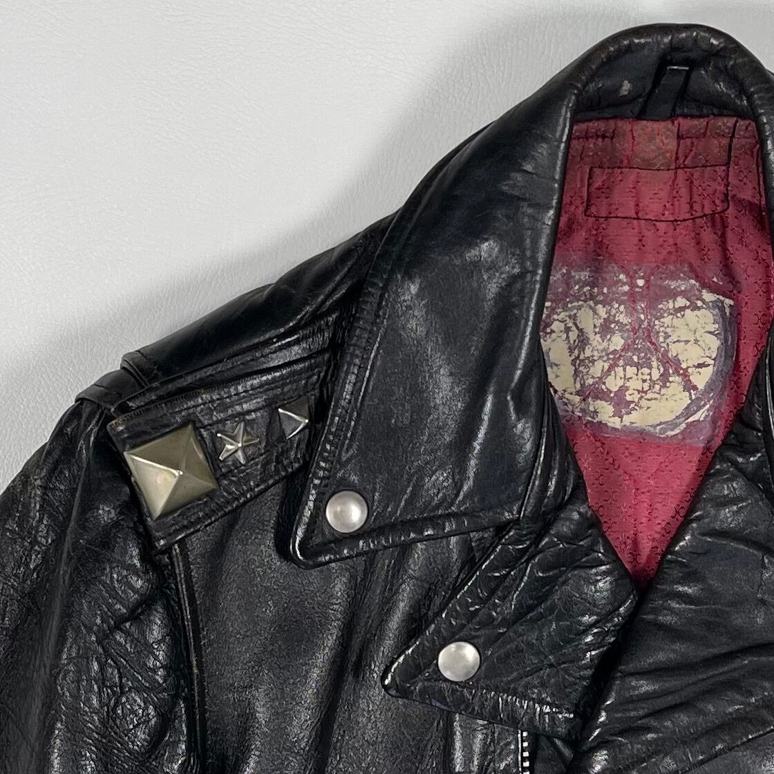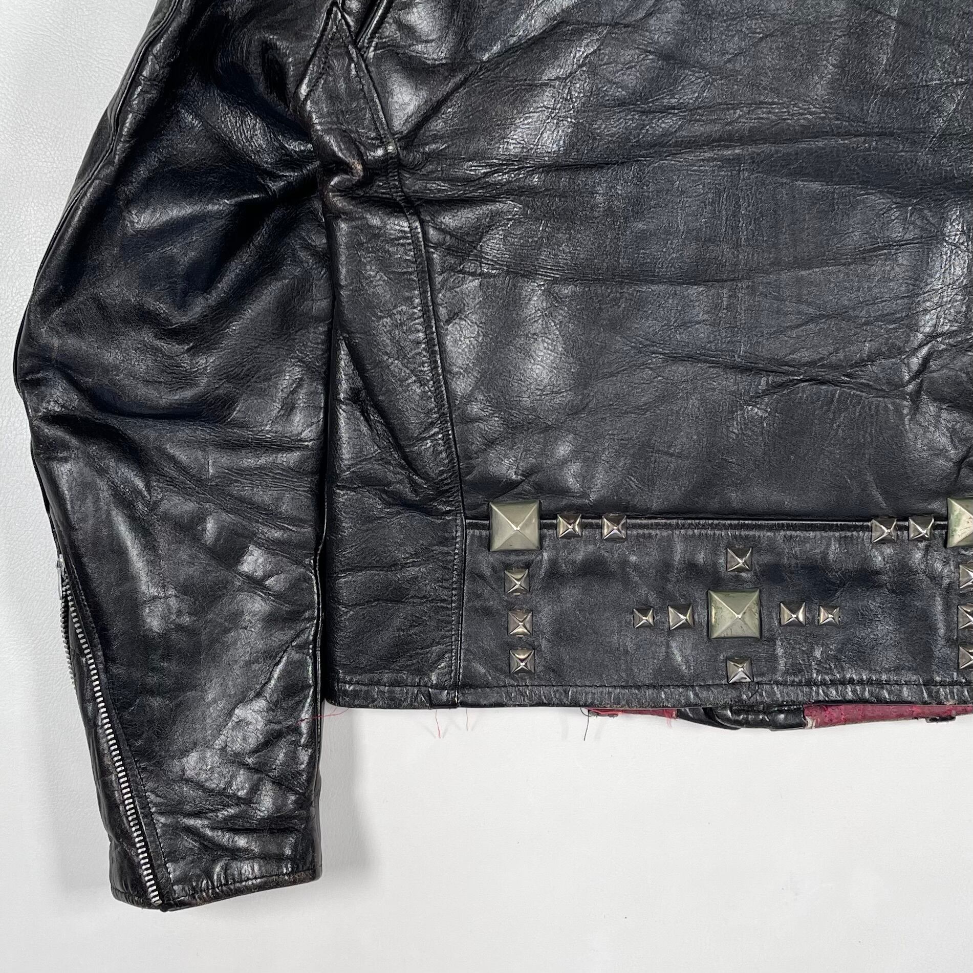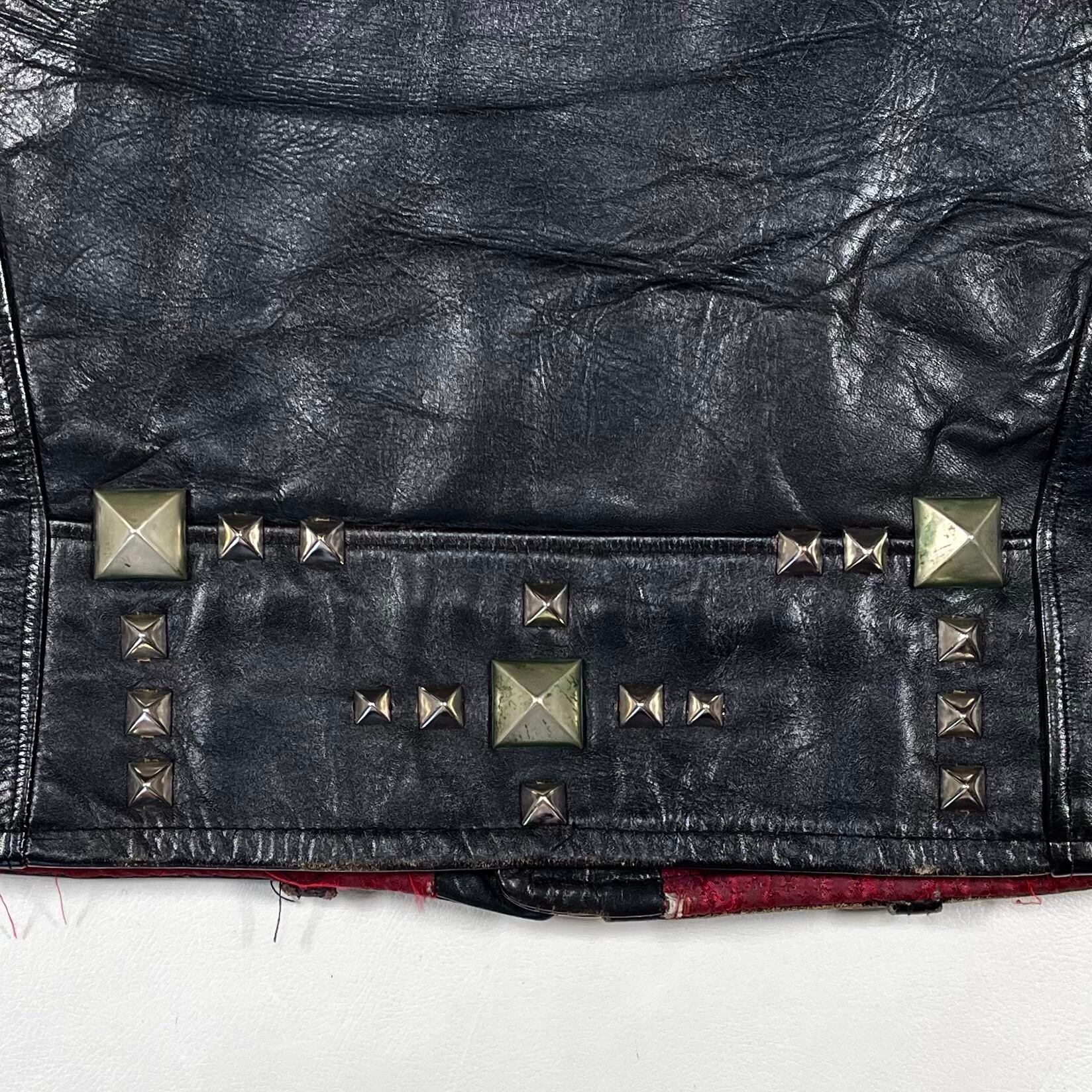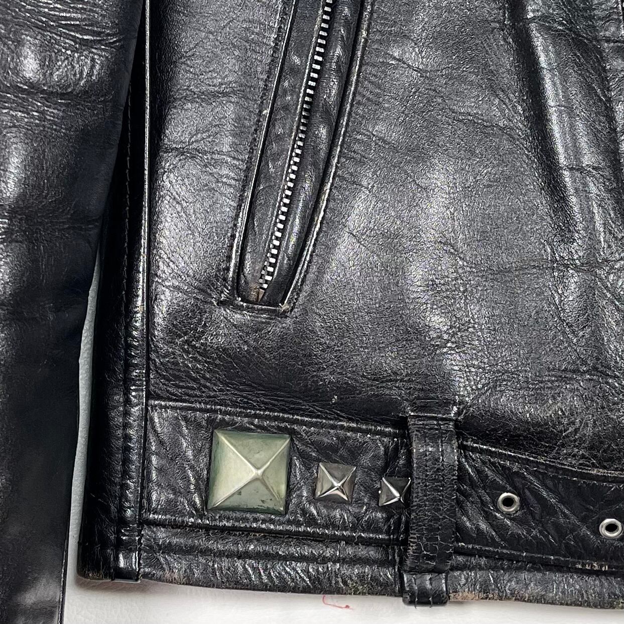 古いものですので、着用によるレザーのシワやスレ、スタッズのくすみと青サビがございます。