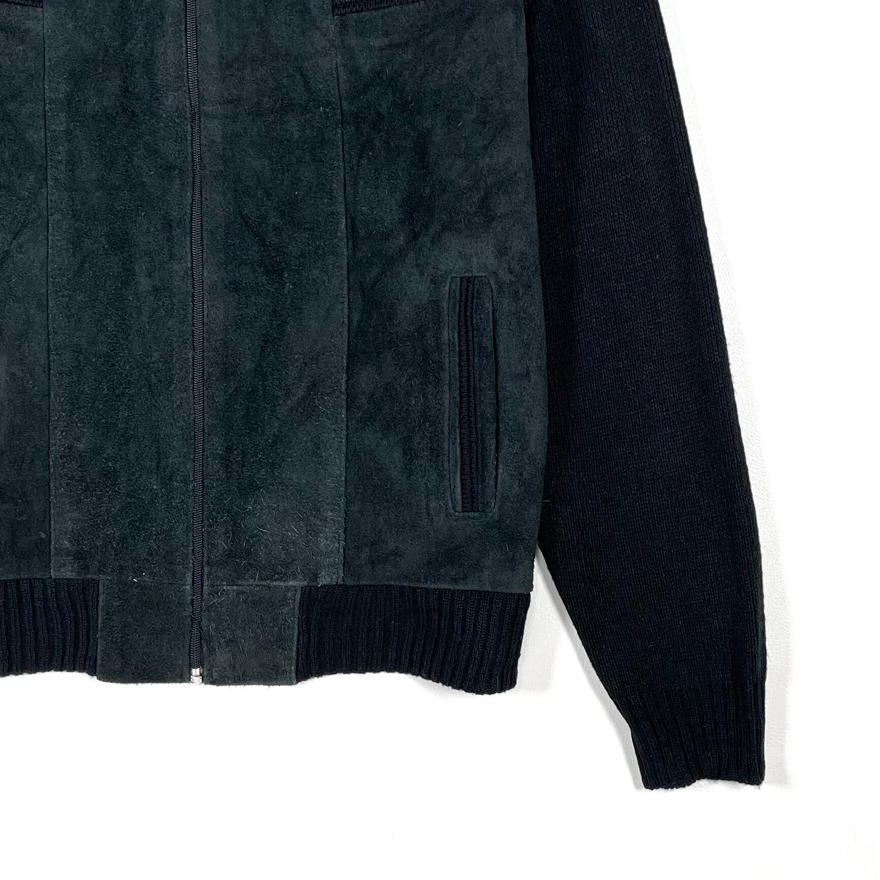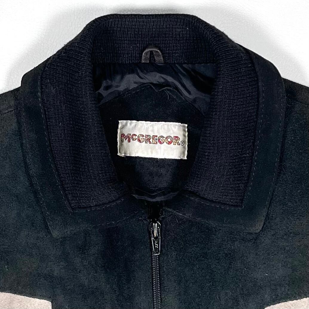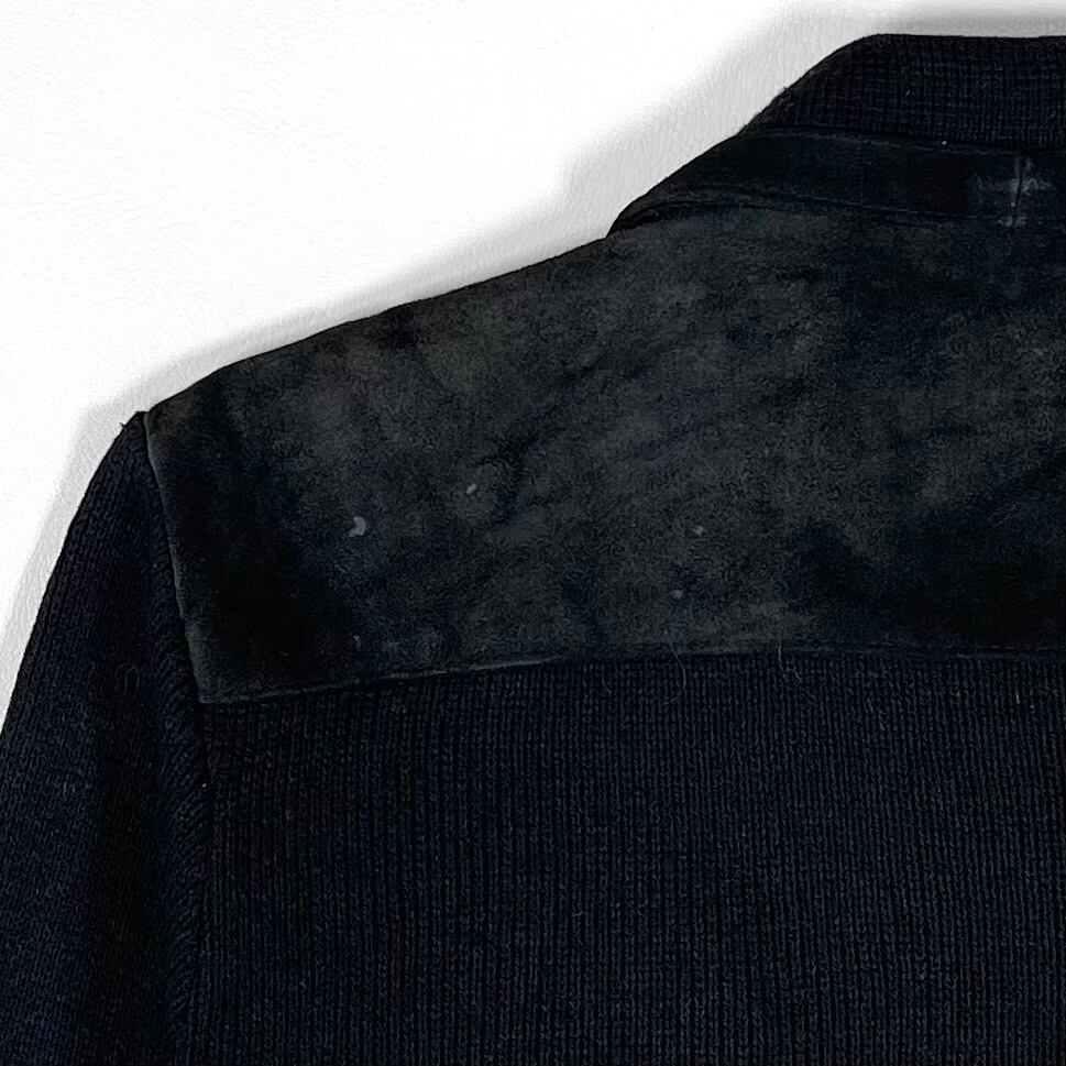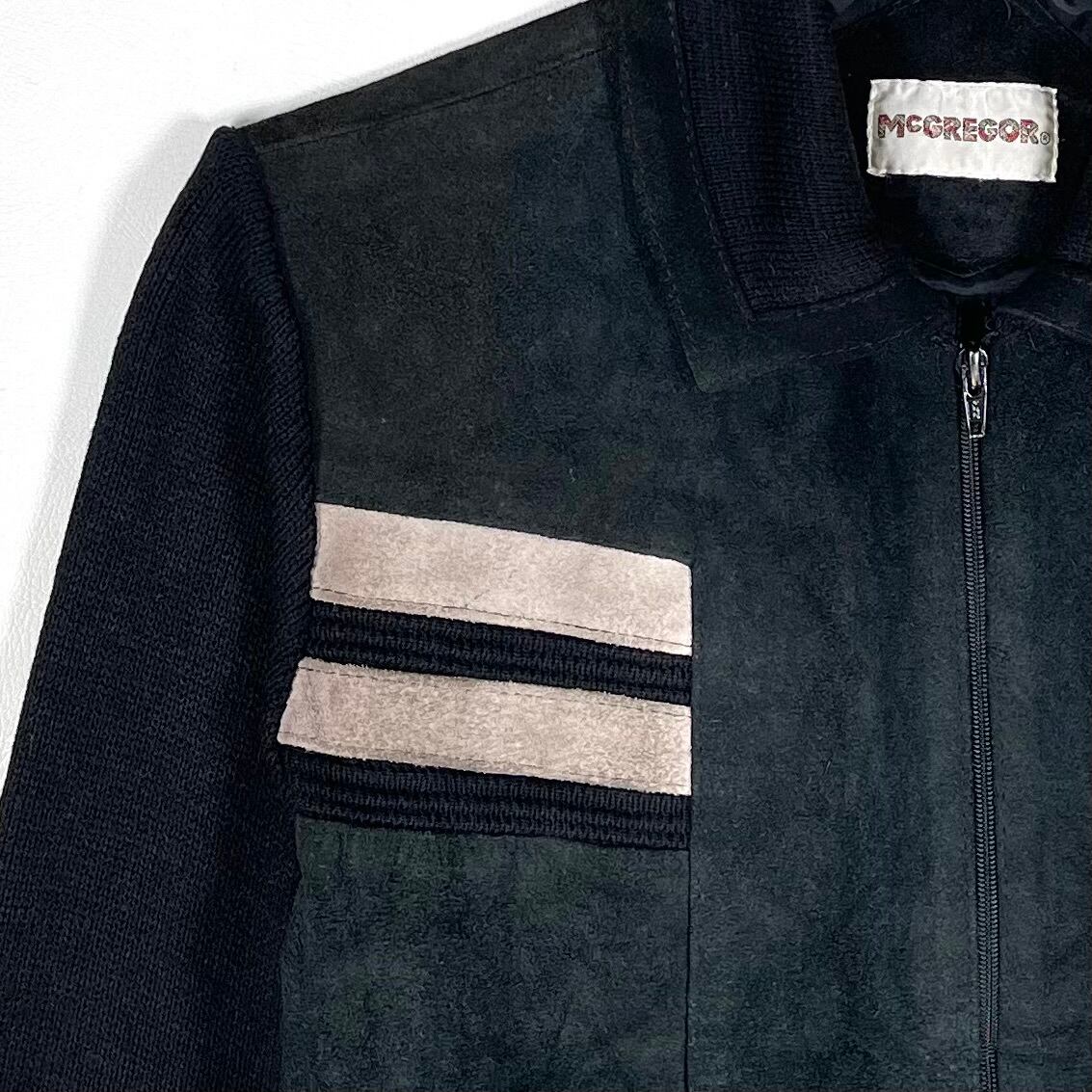 McGREGOR suede jacket with a suede and acrylic knit combination design. This cardigan-style jacket is stylishly designed in black. Due to the nature of the material, there is some fuzziness and wear on the suede parts, and the knit also shows some fuzziness from wear.