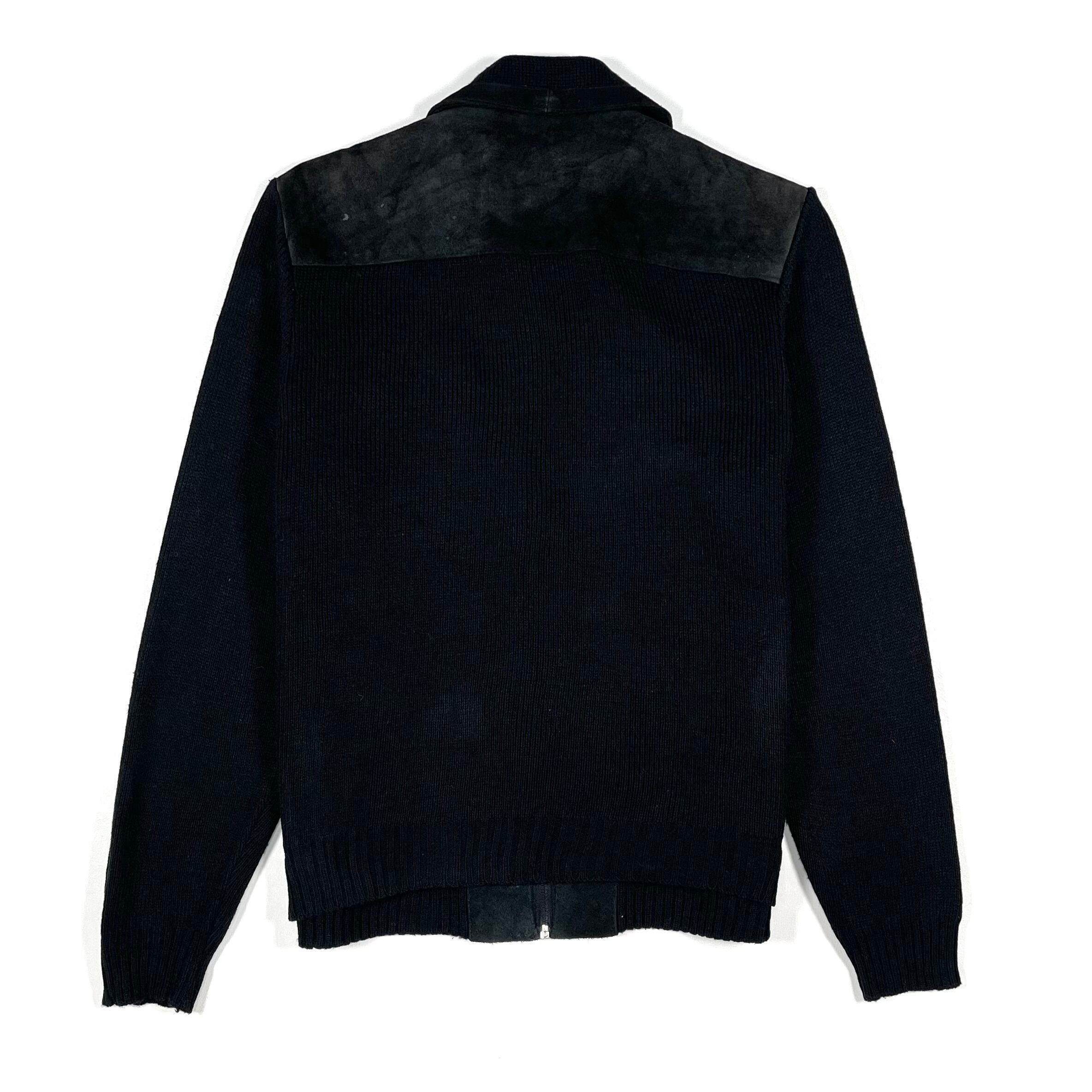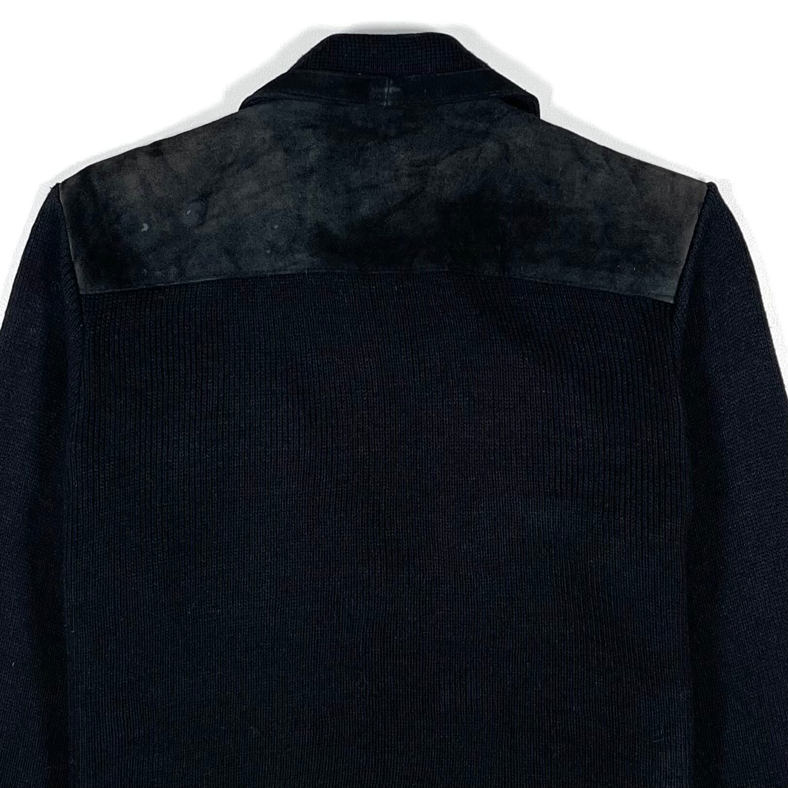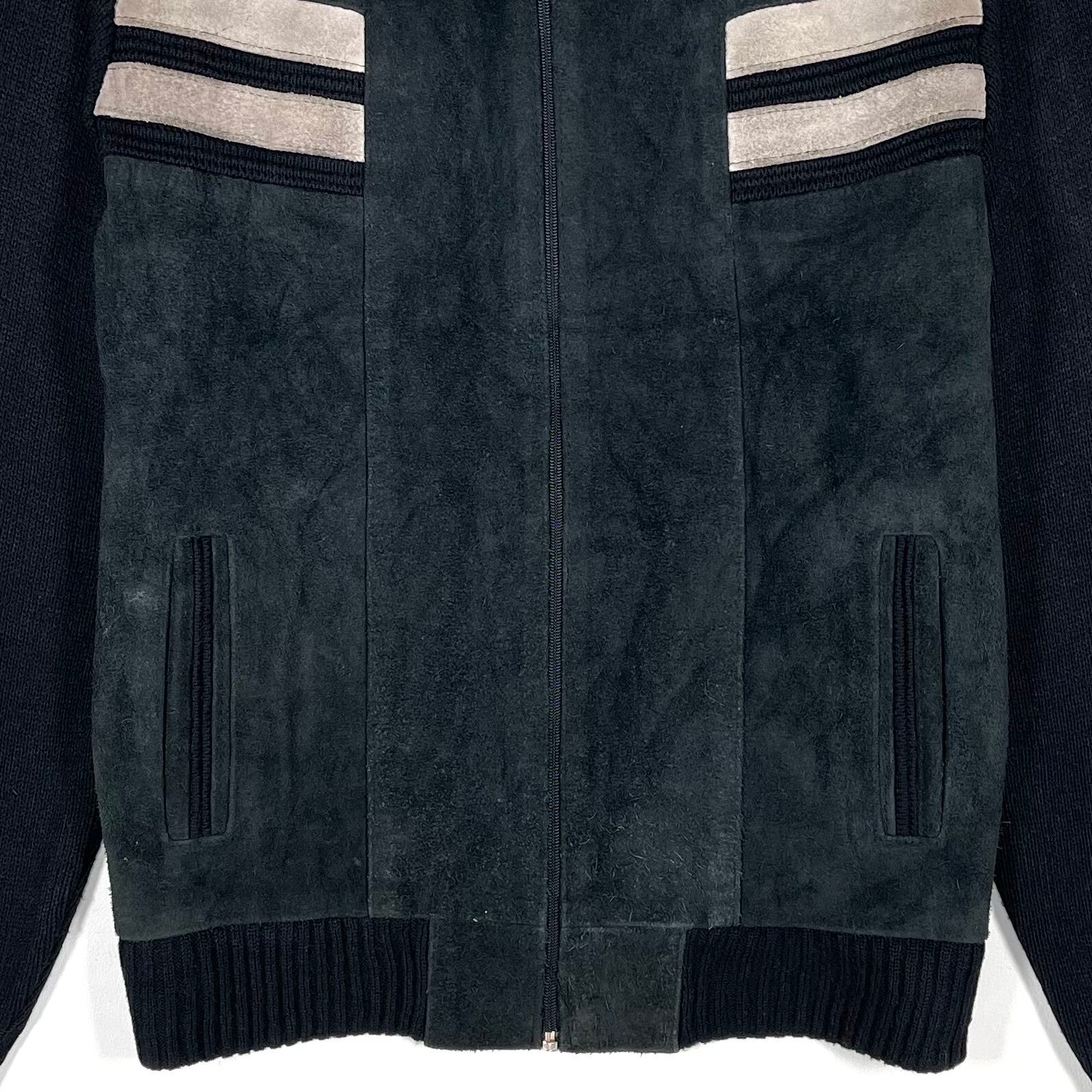 McGREGOR suede jacket with a suede and acrylic knit combination design. This cardigan-style jacket is stylishly designed in black. Due to the nature of the material, there is some fuzziness and wear on the suede parts, and the knit also shows some fuzziness from wear.