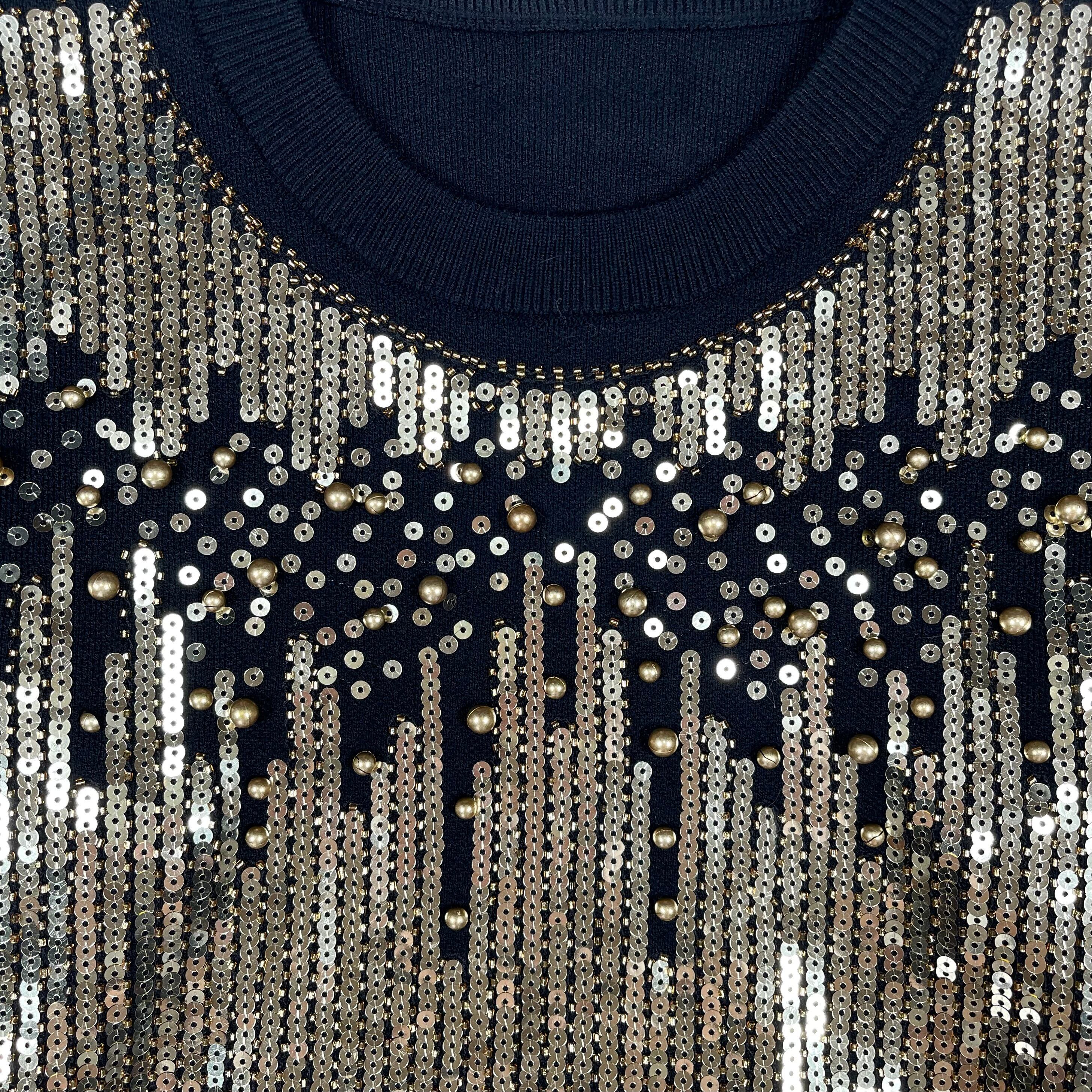 フロントと袖の全面にゴールドスパンコール刺繍。