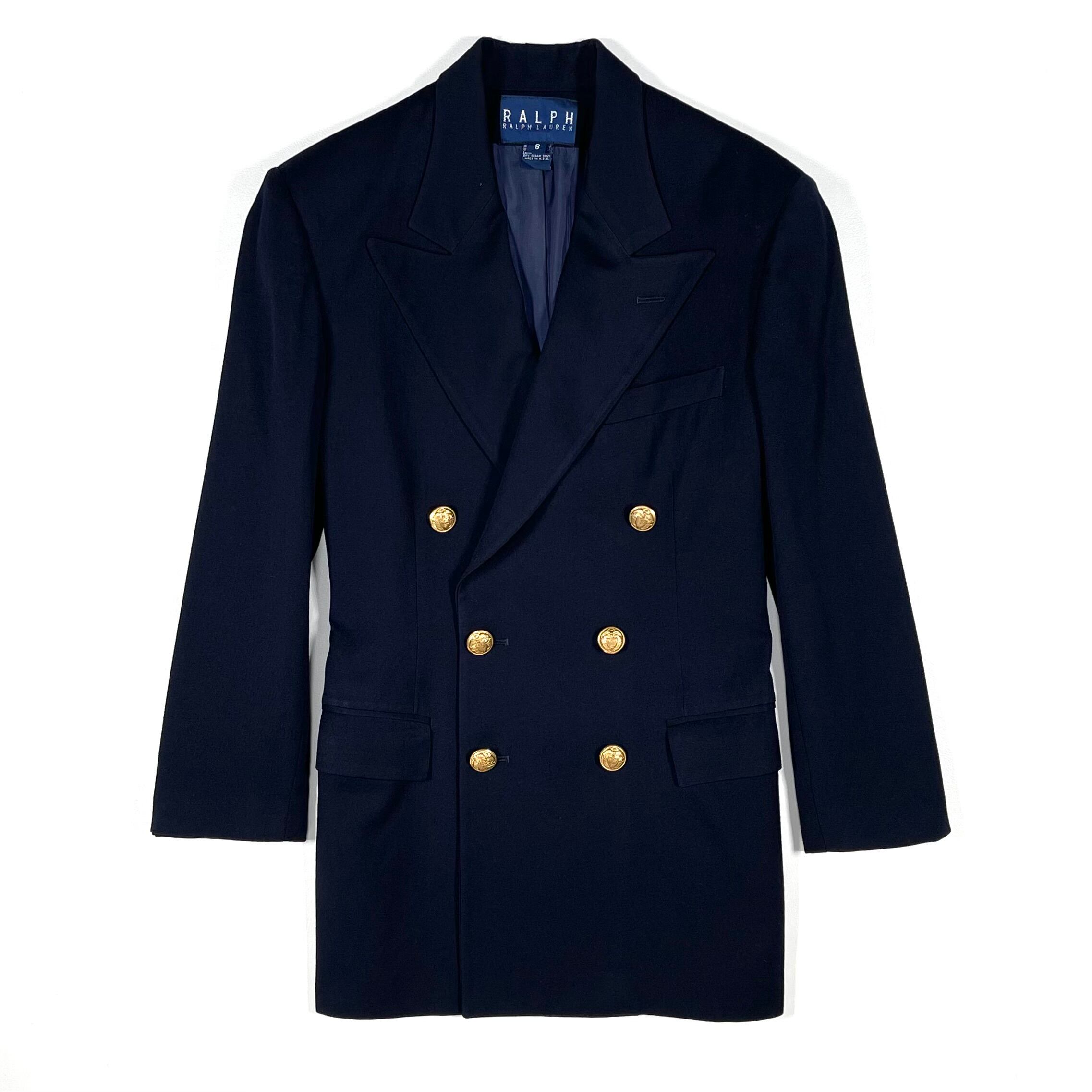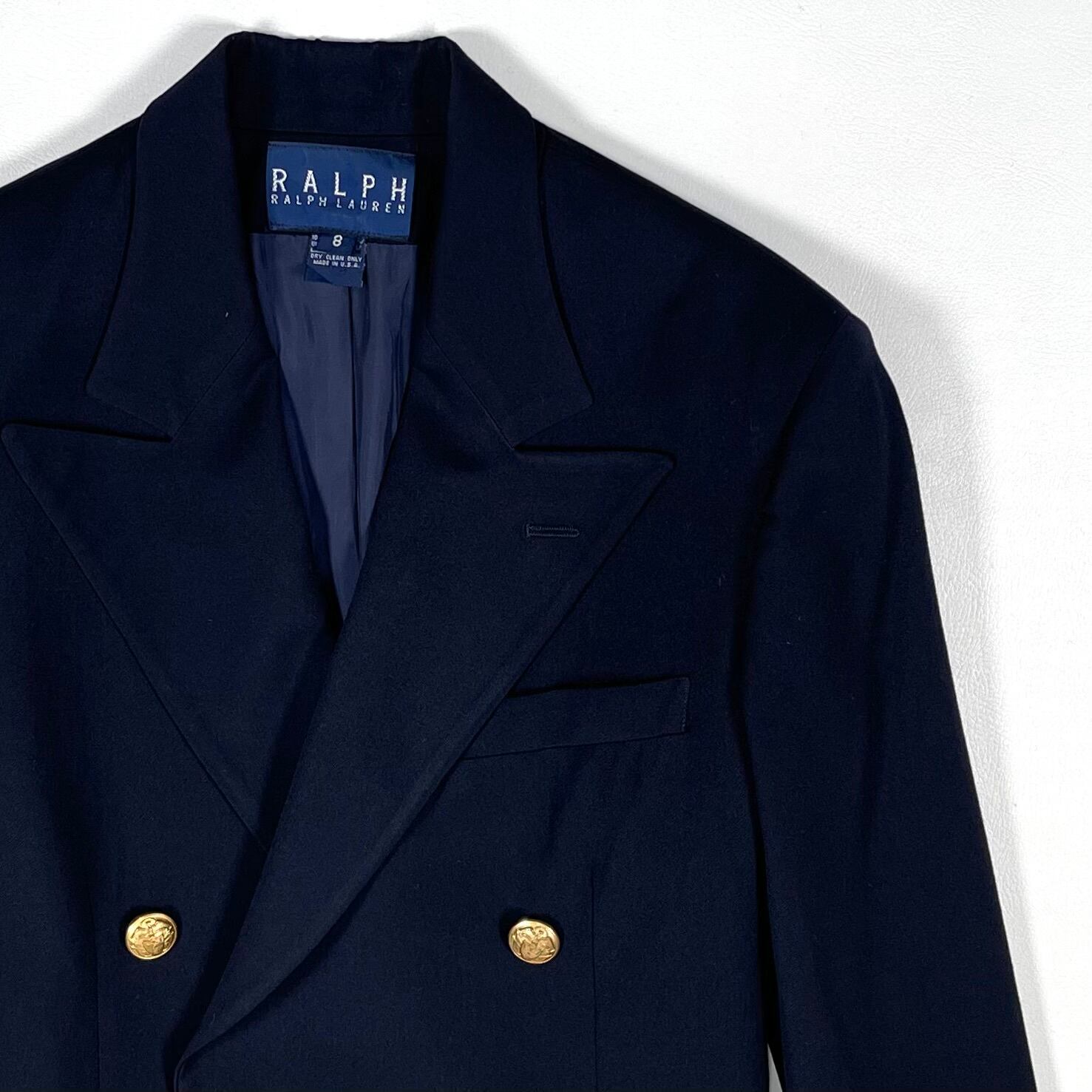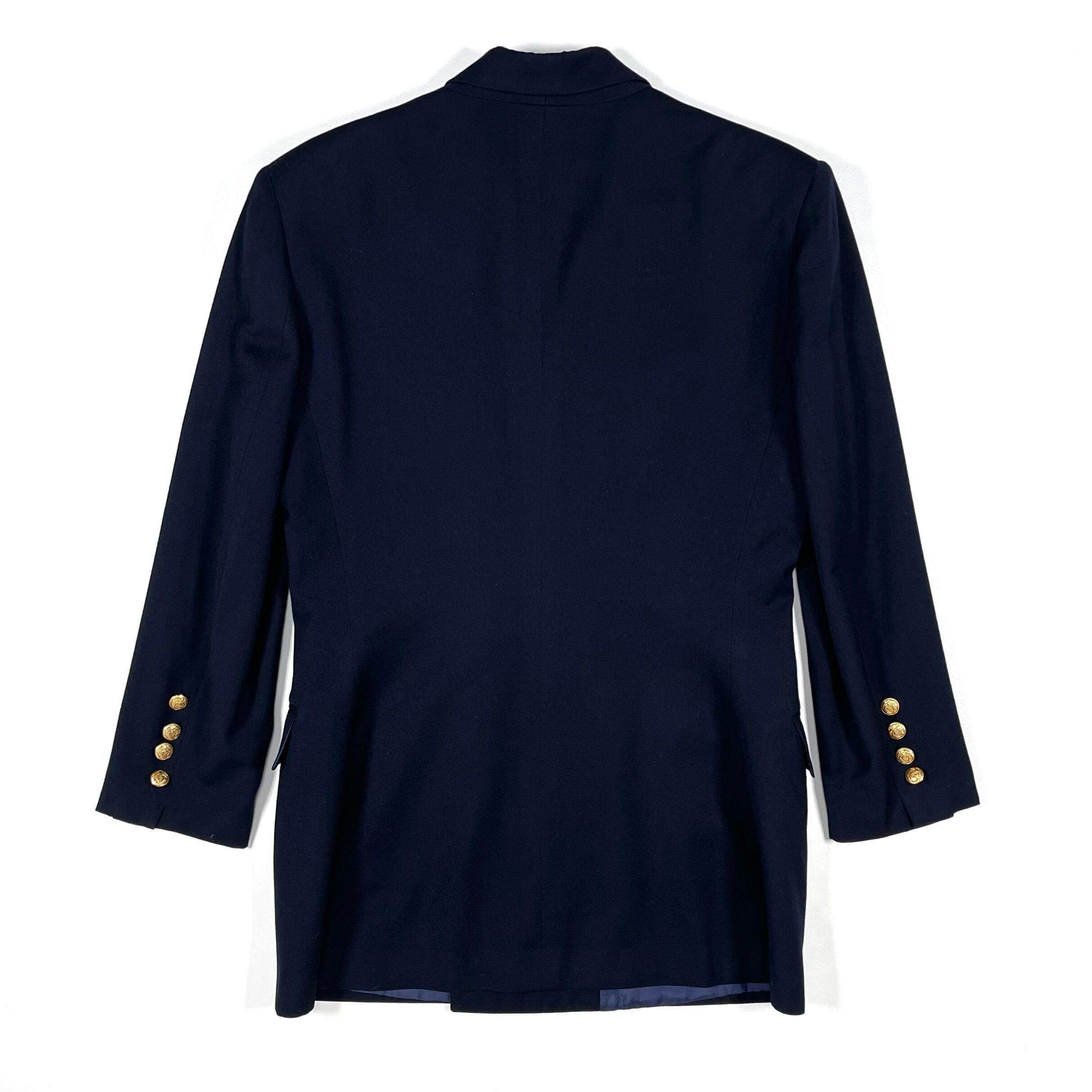 フロント下のボタンホールのホツレ、衿の後ろに小さな傷、裏地に汚れがございます。