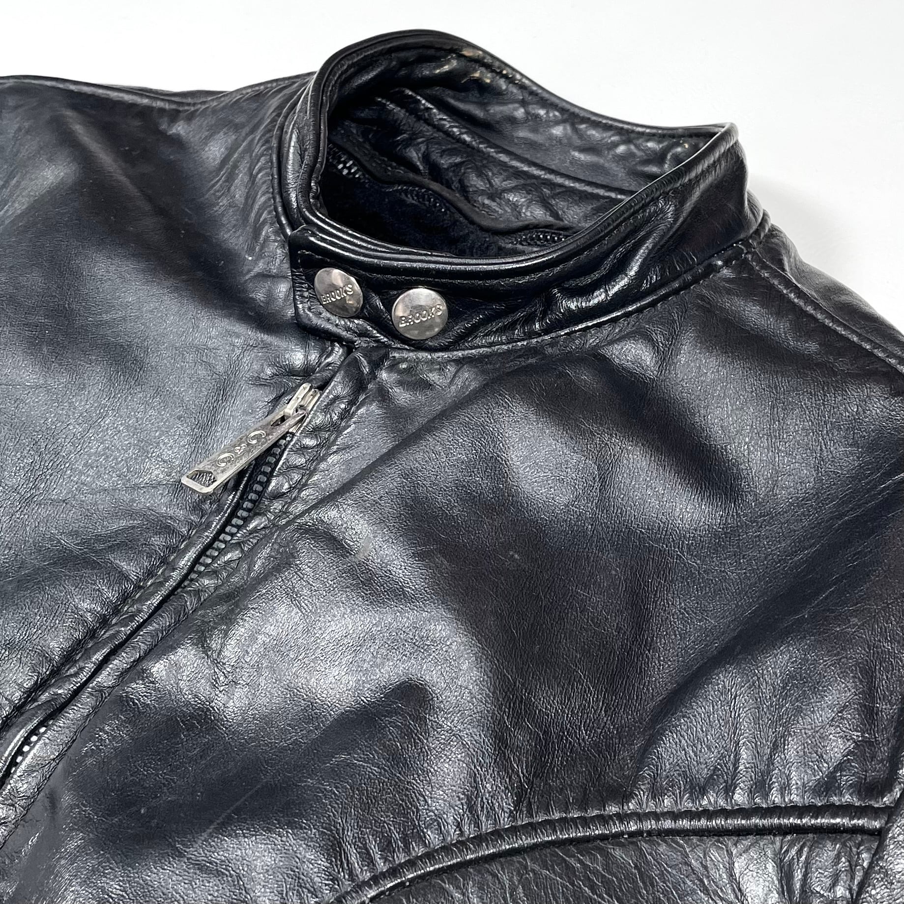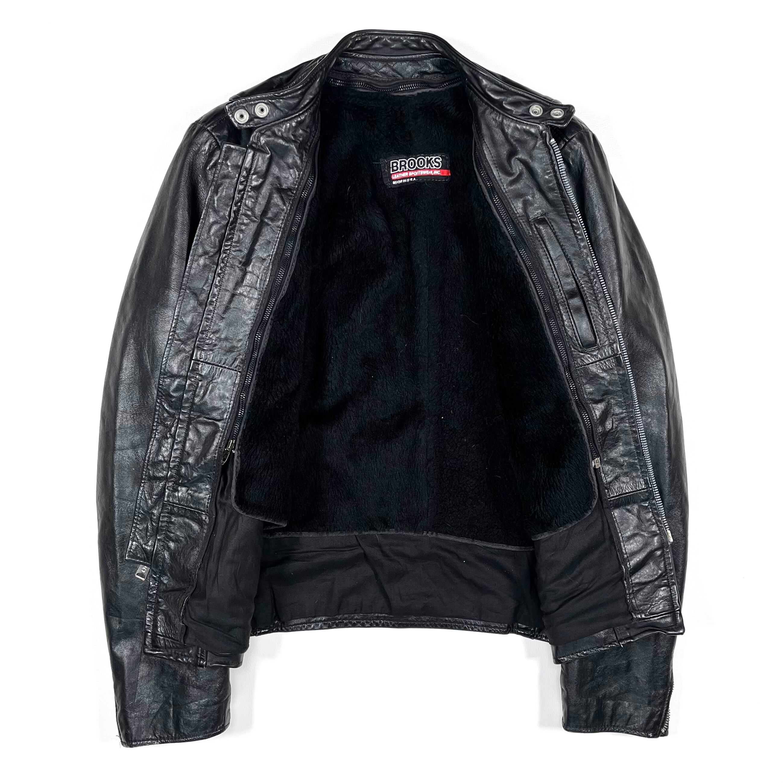 Features a stand collar with front zipper, side belts, and C&C zippers on the front and cuffs.