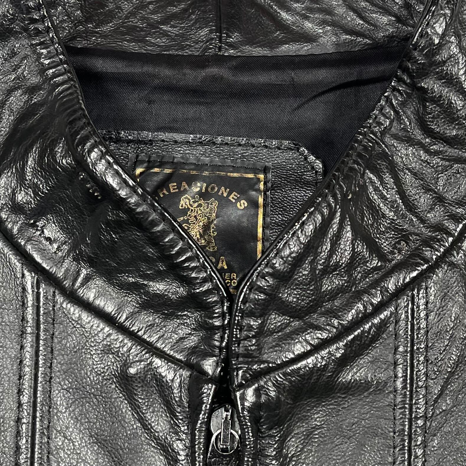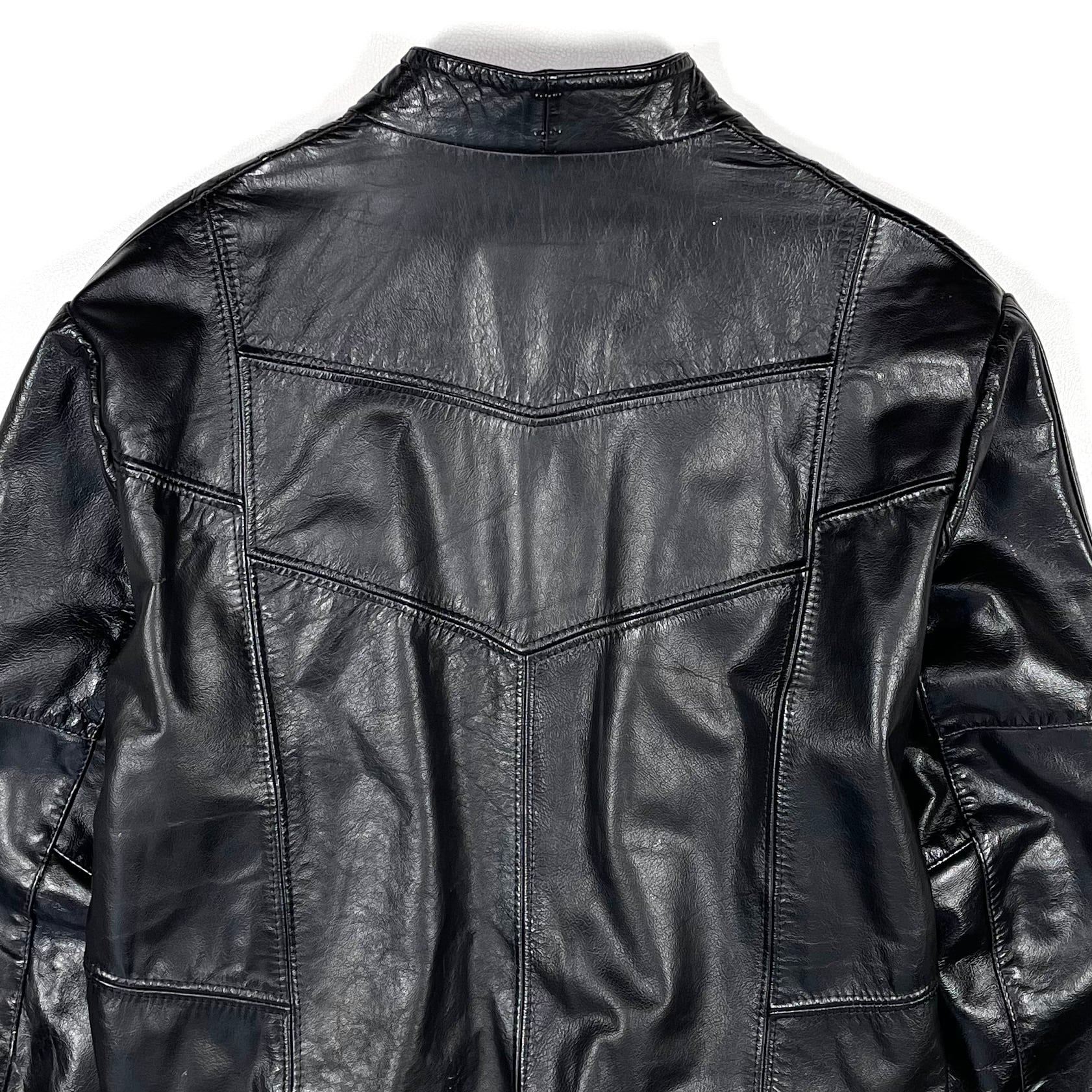 着用によるレザーのシワやスレ、衿にベルトループを取ったステッチ跡がございますが気にならない程度かと思います。