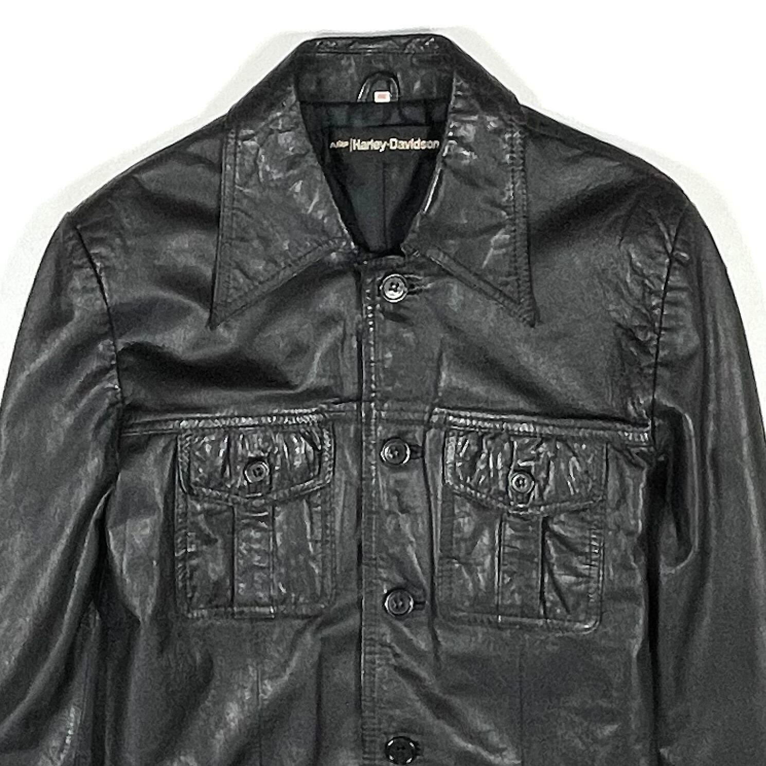 すっきりしたシルエットの70sスタイルのレザージャケットです。