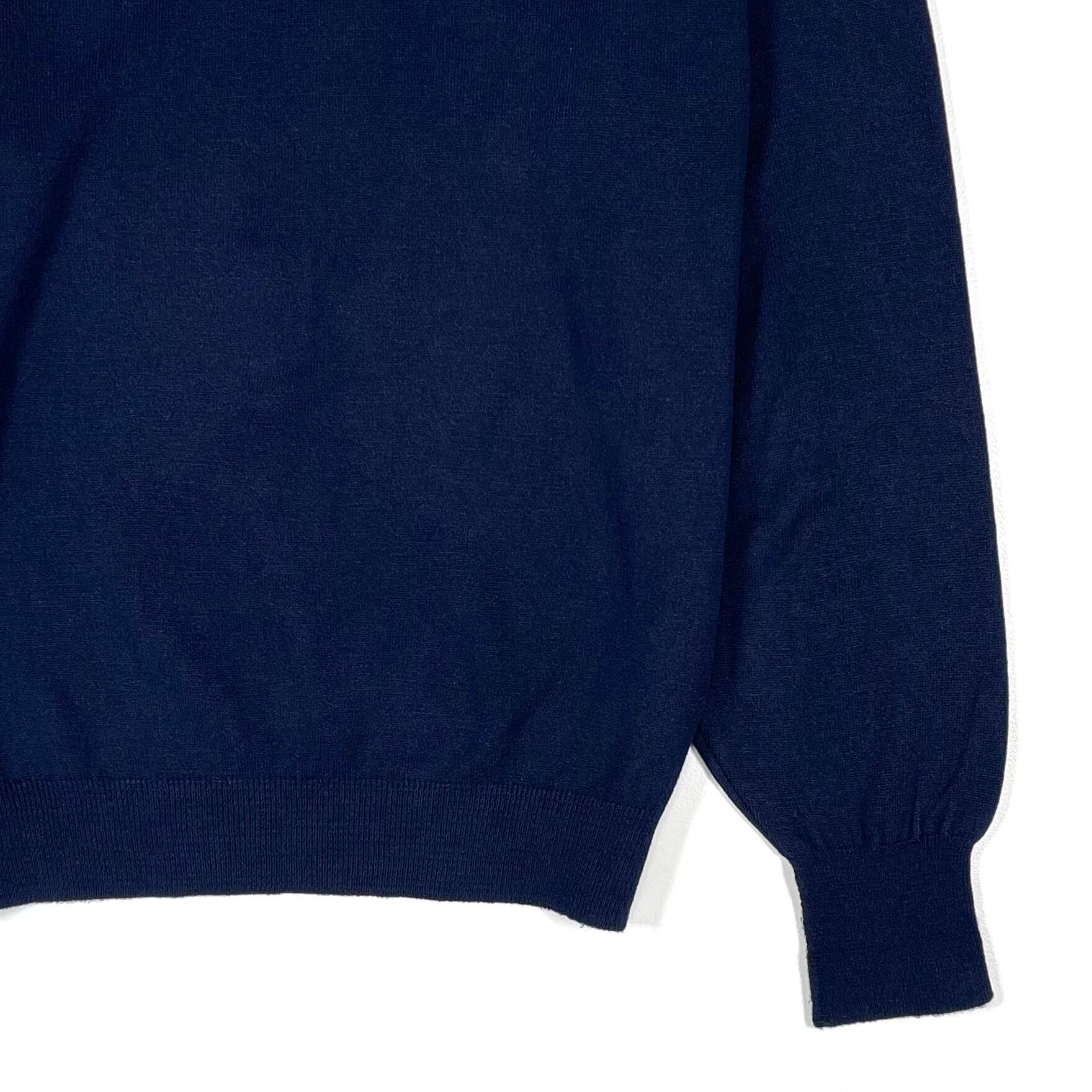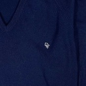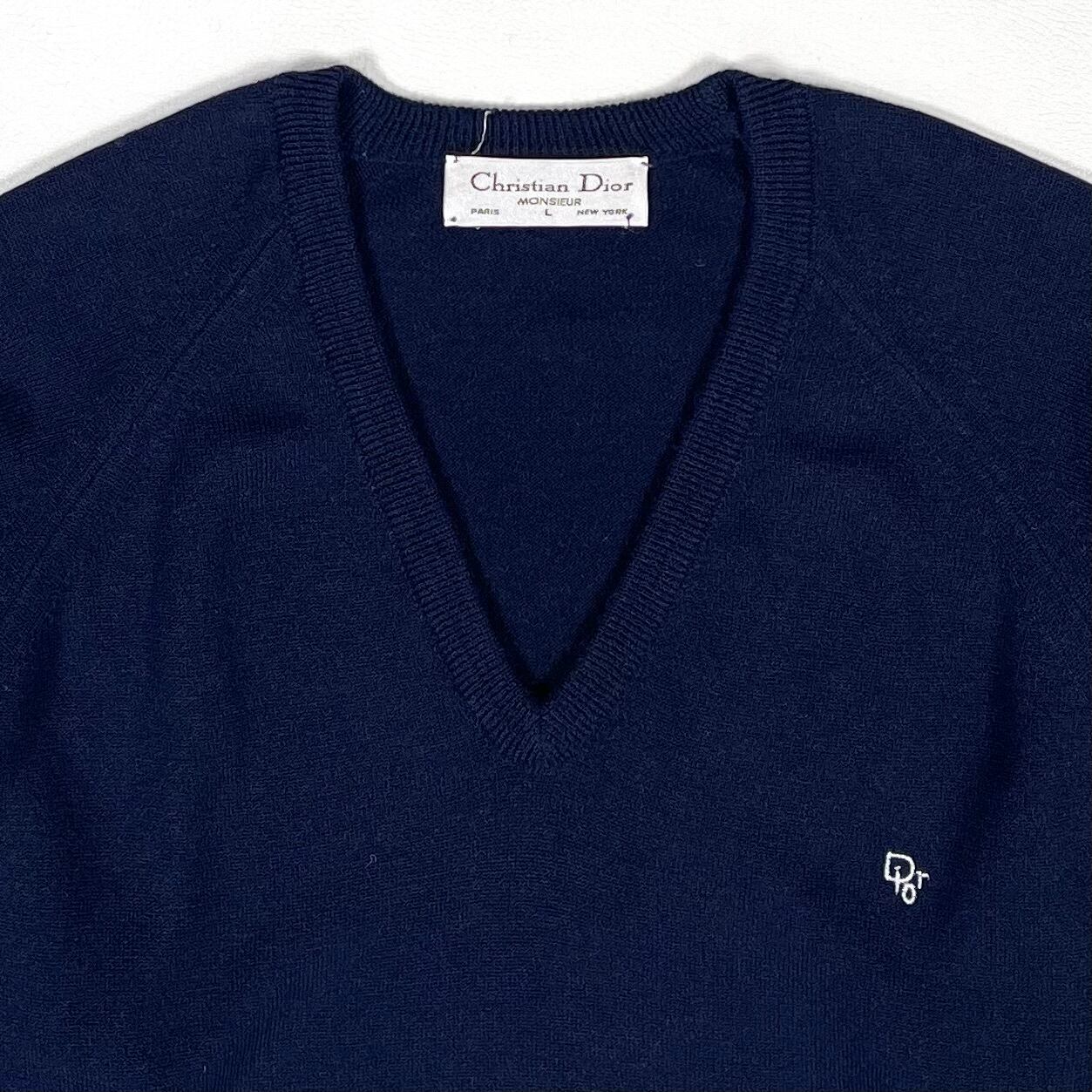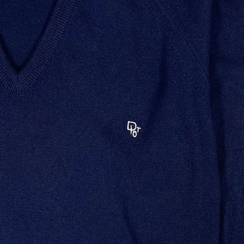 ベーシックなネイビーのセーターに、ホワイトのDiorのワンポイント刺繍