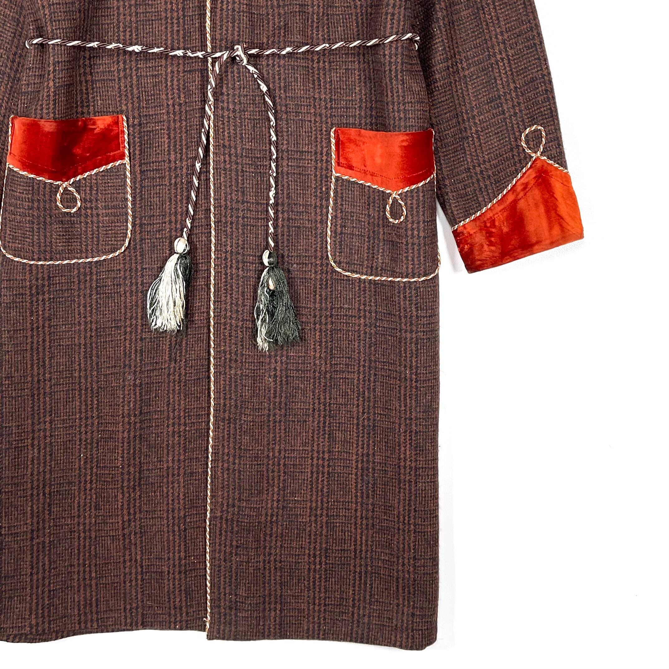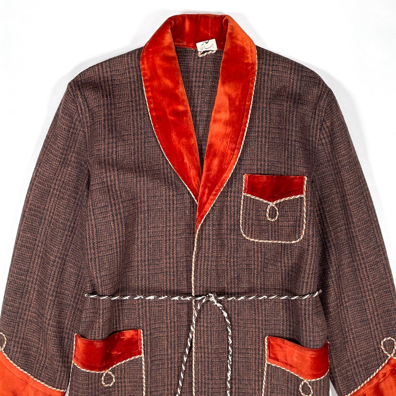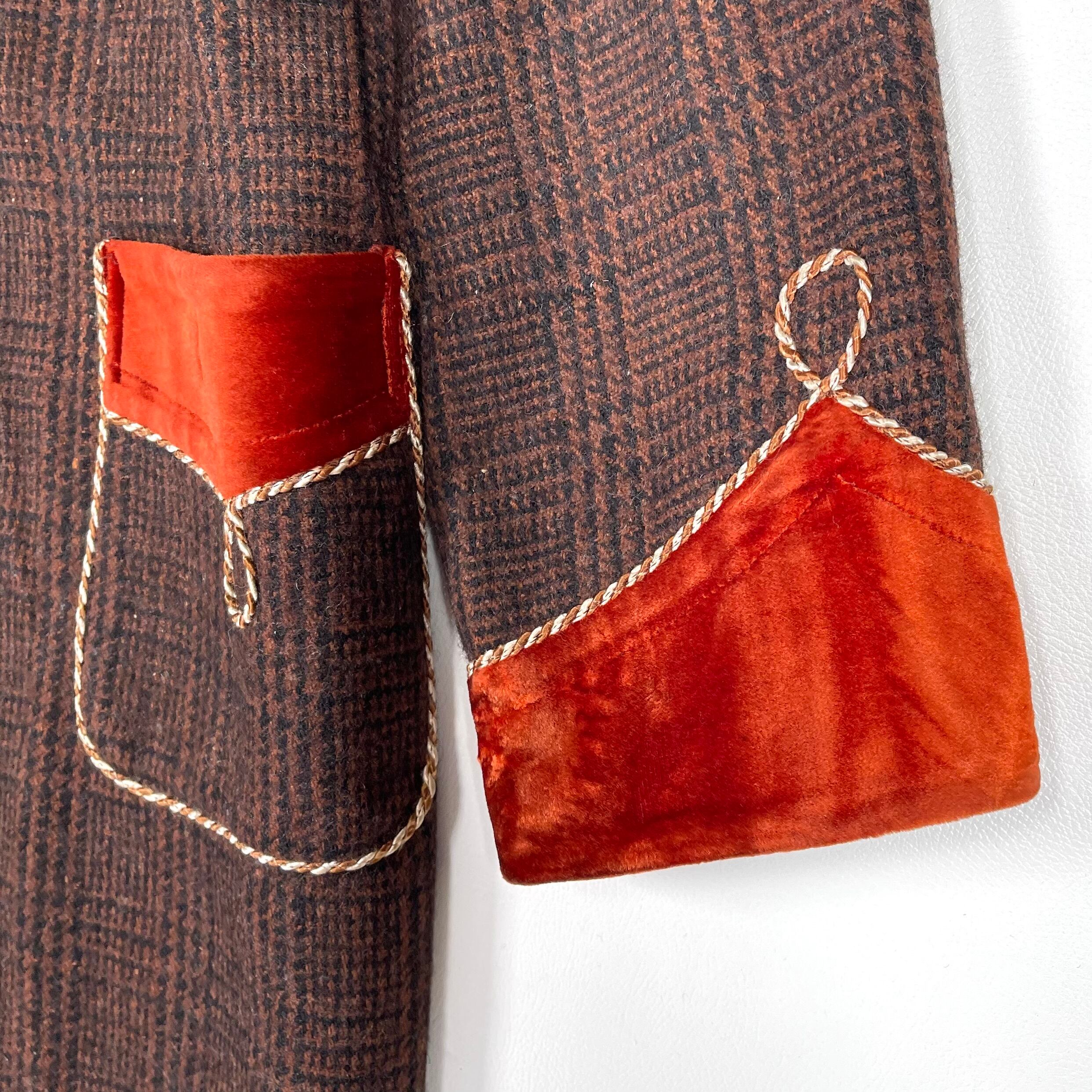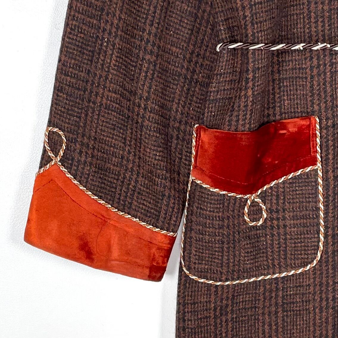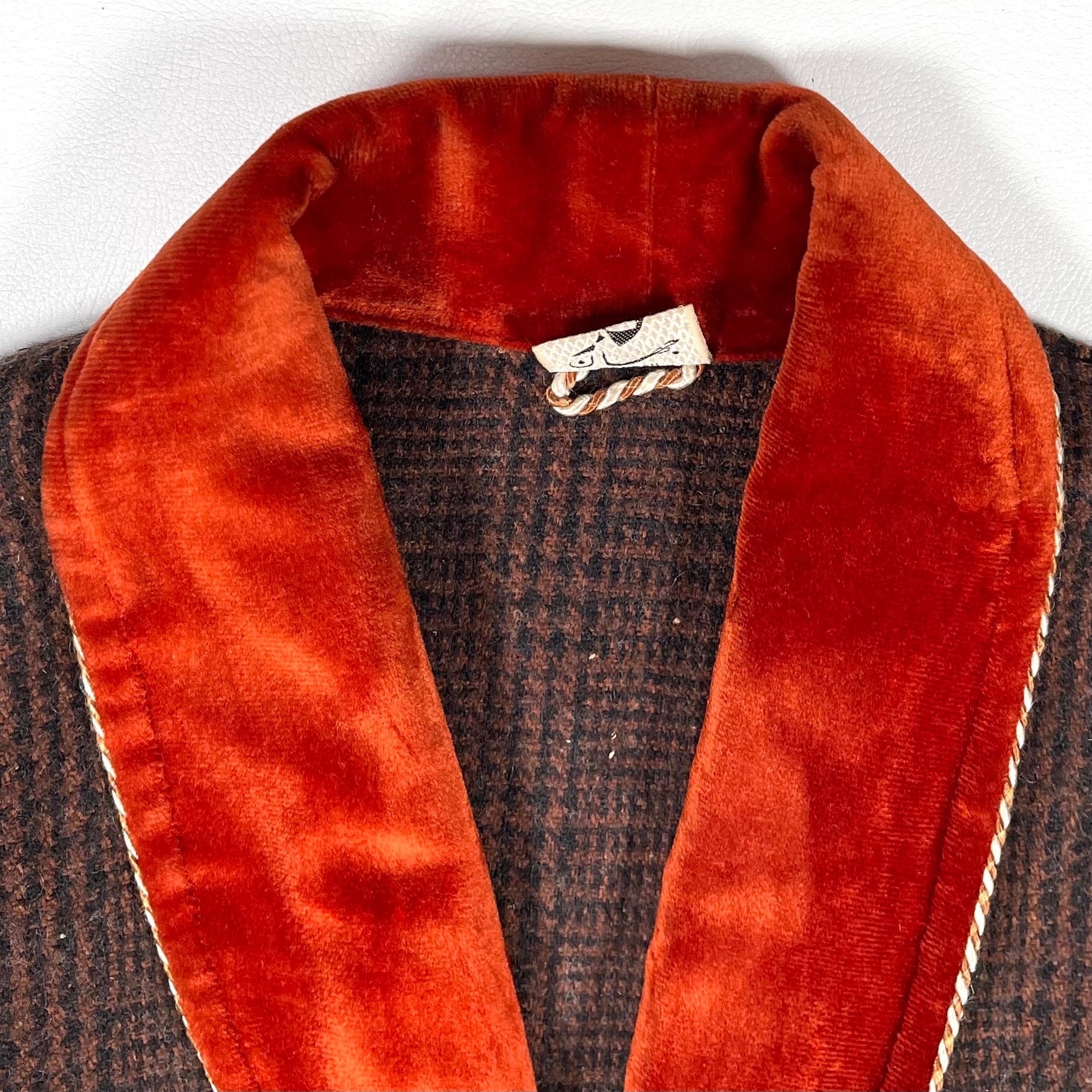 ショールカラーと袖口はオレンジブラウンのベルベット。