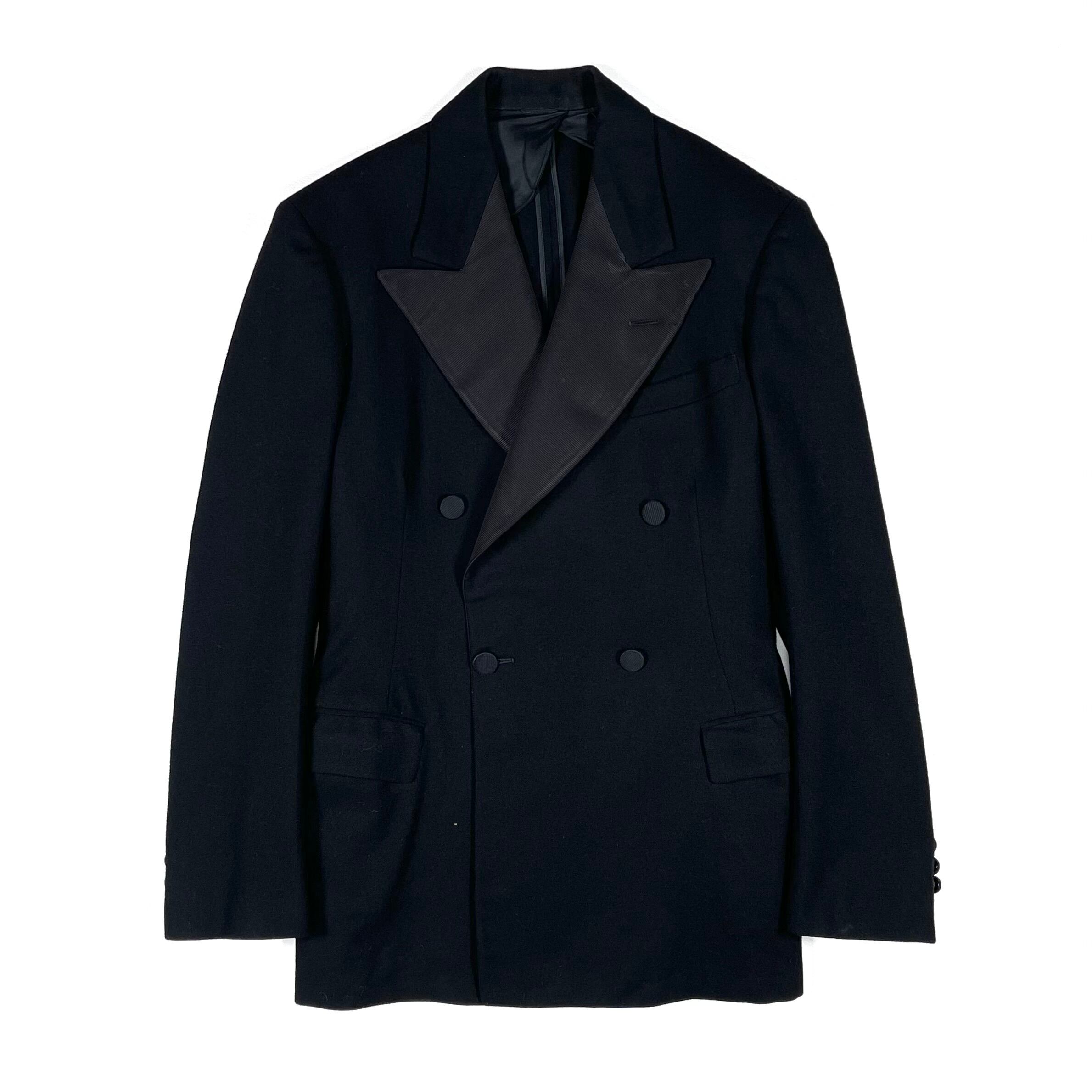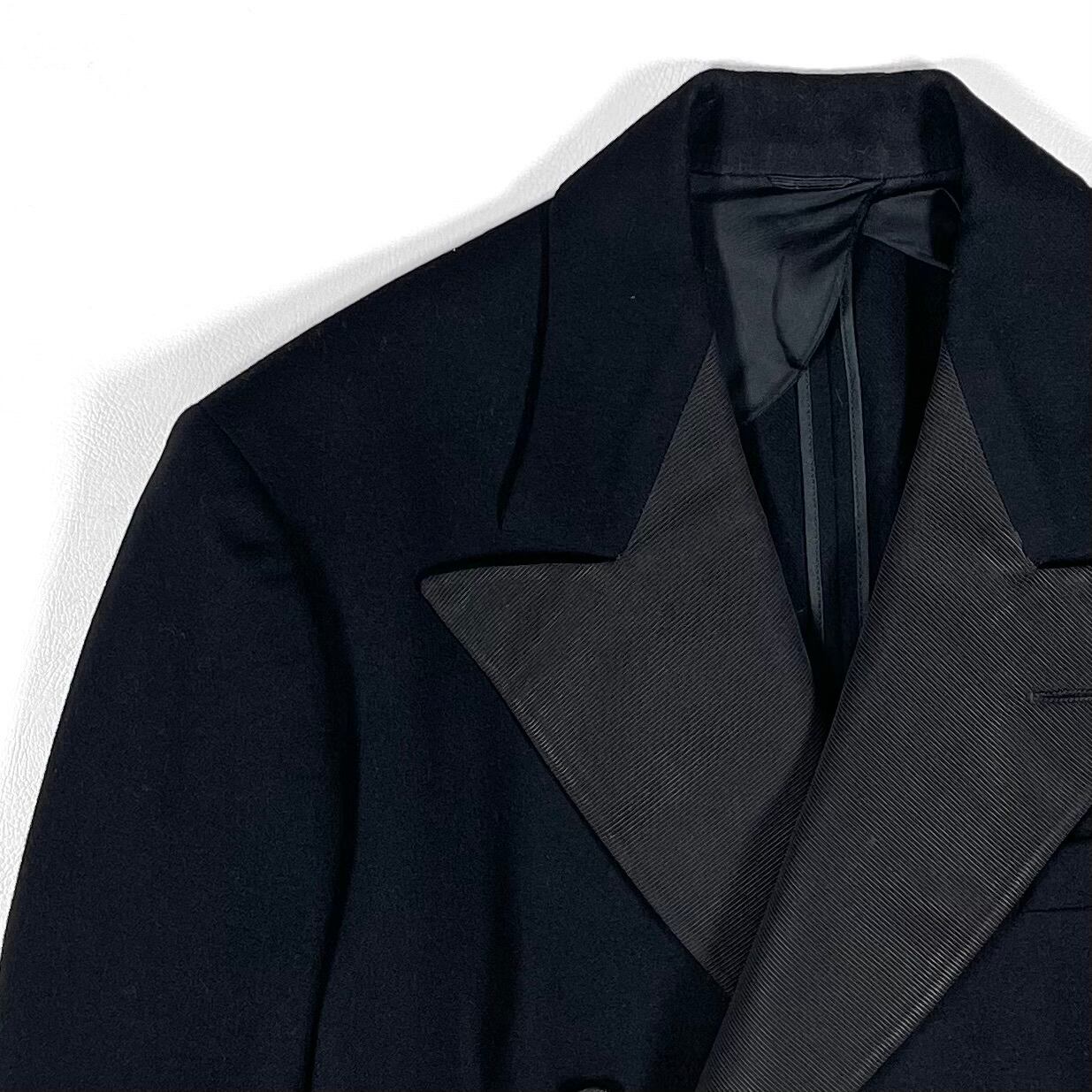 ラペルに小さな傷、後ろにピンホールの修理跡、裏地の薄汚れがございます。